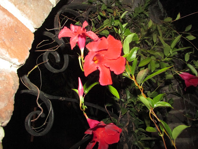 While out enjoying a winter evening walk....we came upon this brick wall that has the beautiful blooms on it.  |